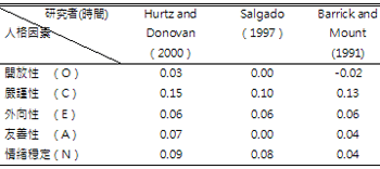 資料來源:Are We Getting Fooled Again ? Coming to Terms with Limitations in the Use of Personality Tests for Personnel Selection. PERSONNEL PSYCHOLOGY 2007, 60, 1029–1049