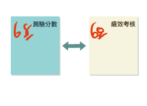 且同時蒐集受測者當時的工作表現分數,若工作態度測驗分數與工作表現